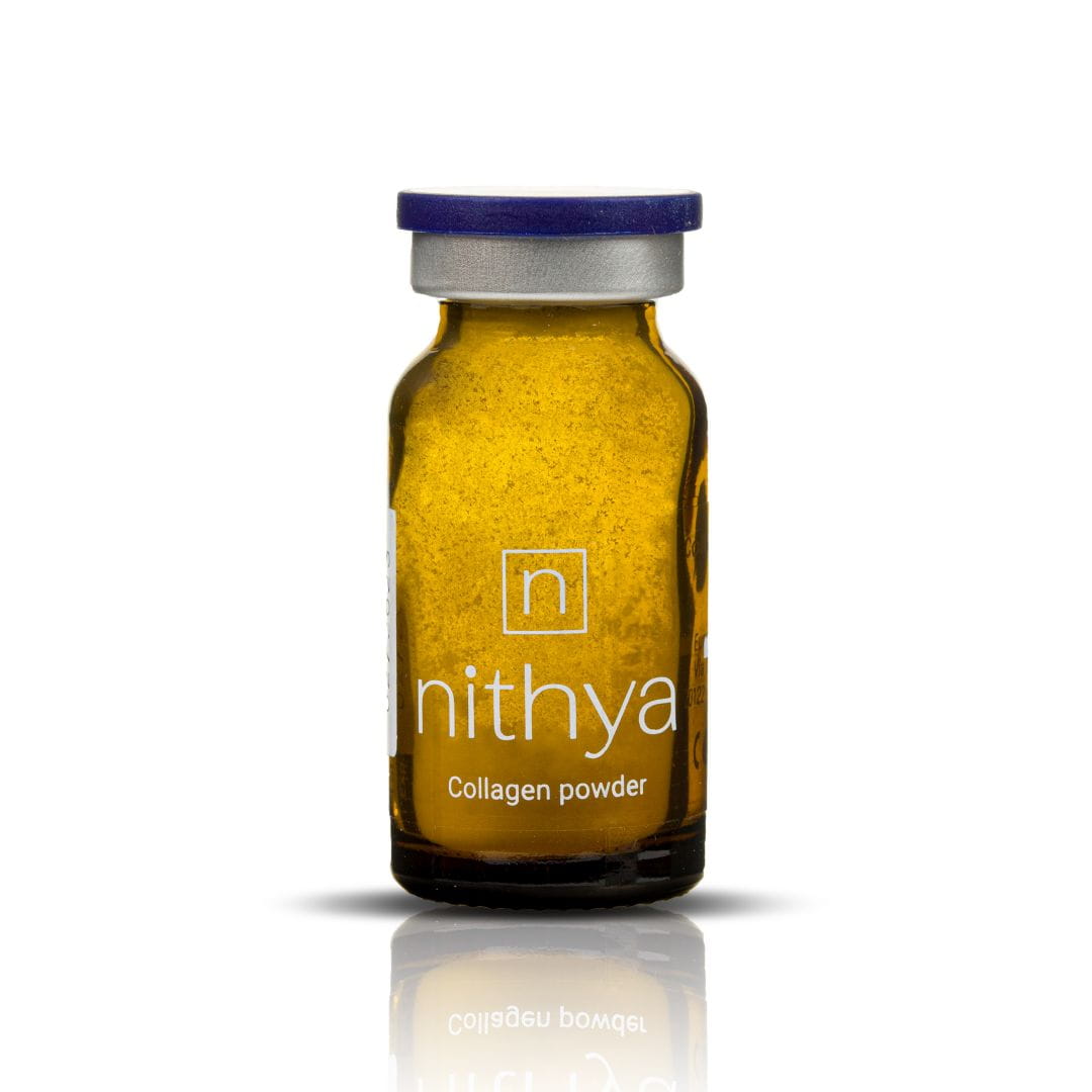to preparat zawierający kolagen typu I, dedykowany do regeneracji i odbudowy skóry, w tym najdelikatniejszych okolic twarzy. Stymuluje produkcję nowych fibroblastów, które przyczyniają się do poprawy kondycji skóry i lepszego jej wyglądu. Ponadto efekty Nithya są znacznie dłuższe niż w przypadku Botoxu czy wypełniaczy, dlatego leczenie nie musi być powtarzane tak często. Preparat NITHYA stosuje się jako profilaktykę po 25 roku życia w celu spowolnienia procesu starzenia skóry. Idealnie nadaje się dla skór z oznakami starzenia, wiotkich, wymagających poprawy napięcia.